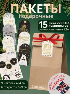 Подарочные пакеты новогодние крафт бумажные набор 15 штук