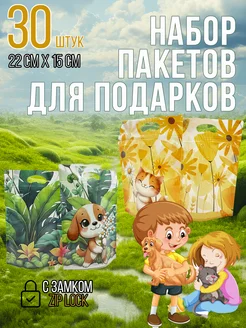 набор пакетиков для подарков кот и пес с zip-lock 30 штук