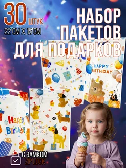 набор пакетиков для подарков с днем рождения zip-look 30шт