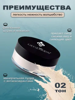Gegemoon Рассыпчатая водостойкая матирующая пудра, No.02