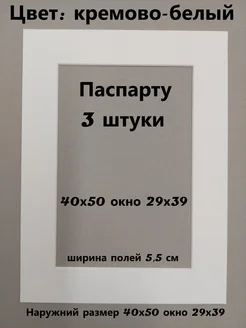 Паспарту для рамок 40х50 с окном 29х39 3 штуки