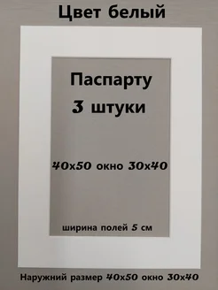 Паспарту для рамок 40х50 с окном 30х40 3 штуки