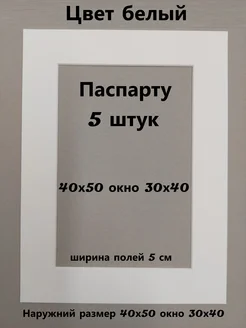Паспарту для рамок 40х50 с окном 30х40 5 штук