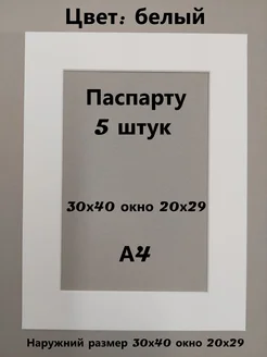 Паспарту для рамок 30х40 с окном 20х29 (А4) 5 штук