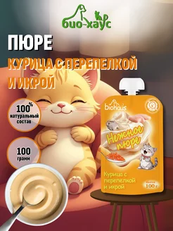 Лакомство для кошек. Нежное пюре Курица с перепелкой и икрой