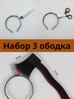 Ободок на Хэллоуин набор 3шт - топор, шприц, ножницы