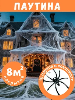 Искусственная паутина с пауками на хэллоуин