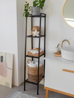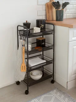 Этажерка на колесиках металлическая черная для кухни ванной