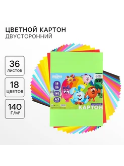 Цветной картон А3, 18 цветов, немелованный, 140 г,м2