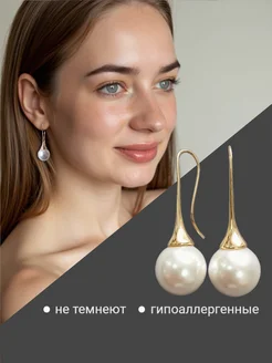 Длинные крупные серьги с жемчугом