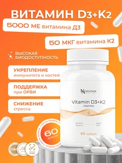 Д3 К2 Витамин 5000 МЕ для мышц и костей D3 K2 60 капсул