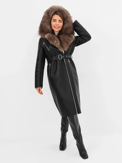 Дубленка пилот авиатор большие размеры с опушкой из песца