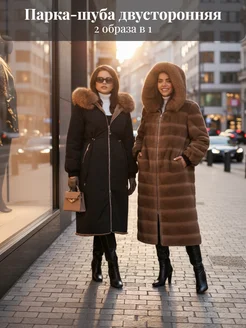 Парка шуба двусторонняя капюшон из песца большие размеры