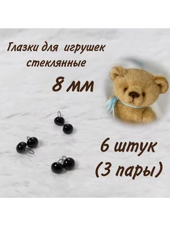 Глазки для игрушек стеклянные, с петлей ручная работа 6мм