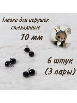 Глазки для игрушек стеклянные, с петлей ручная работа 10мм