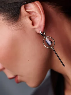 Длинные серьги асимметрия с натуральным камнем