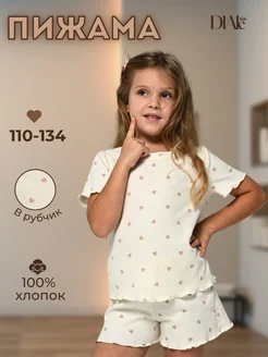 Пижама детская с шортами и футболкой в рубчик