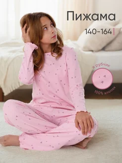 Пижама для подростков со штанами и футболкой в рубчик