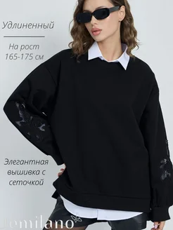 Свитшот черный удлиненный с вышивкой с разрезами ONESIZE