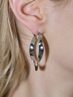 Серьги кольца крупные серебристые гвоздики