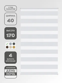 Рулонные шторы жалюзи День-Ночь белый 40x170см