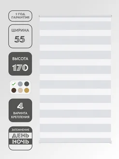 Рулонные шторы жалюзи ДЕНЬ-НОЧЬ белый 55x170см