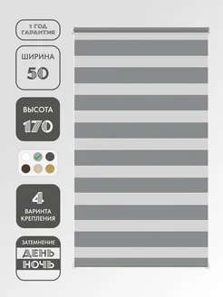 Рулонные шторы жалюзи День-Ночь серый 50x170см