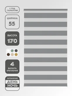 Рулонные шторы жалюзи ДЕНЬ-НОЧЬ серый 55x170см