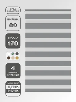 Рулонные шторы жалюзи ДЕНЬ-НОЧЬ серый 80x170см