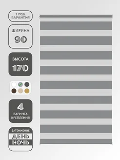 Рулонные шторы жалюзи ДЕНЬ-НОЧЬ серый 90x170см