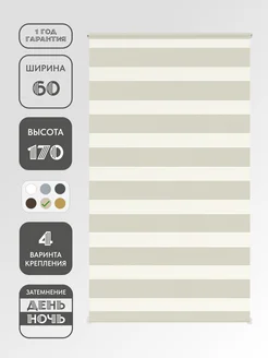 Рулонные шторы жалюзи День-Ночь бежевый 60x170см