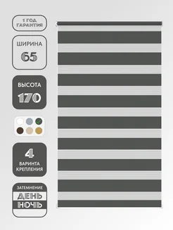 Рулонные шторы жалюзи ДЕНЬ-НОЧЬ графит 65x170см