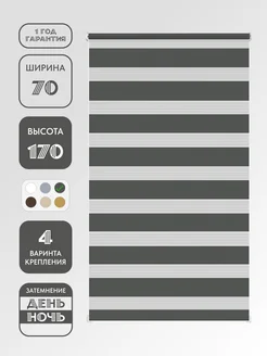Рулонные шторы жалюзи День-Ночь графит 70x170см