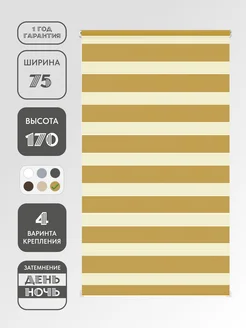 Рулонные шторы жалюзи ДЕНЬ-НОЧЬ горчичный 75x170см