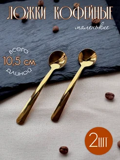 Ложки кофейные маленькие, для кофе, 9 см, золотистые, 2 шт