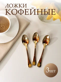 Ложки кофейные маленькие, для кофе 11 см, 3 шт, золотистые