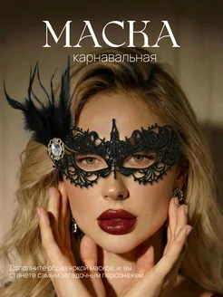 Маска карнавальная ажурная с пером на вечеринку новый год