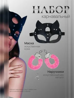 Маска кожаная карнавальная кошки на новый год с наручниками