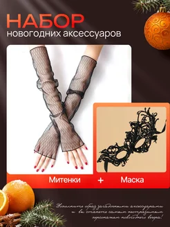Митенки перчатки + маска ажурная новогодние на вечеринку