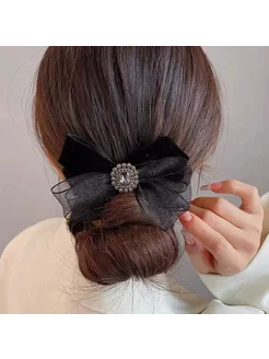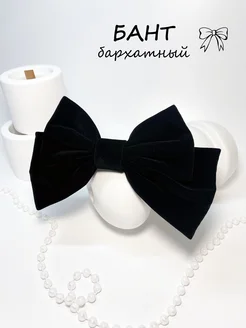 Бант черный бархат на заколке в подарочной коробке
