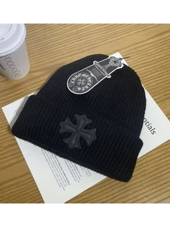 шапка бини вязаная с отворотом
