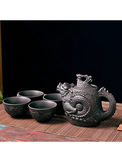 Чайный набор "Черный Дракон" (500 мл) и 4 чашки