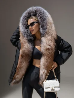 Зимняя куртка с натуральным мехом лисы и капюшоном