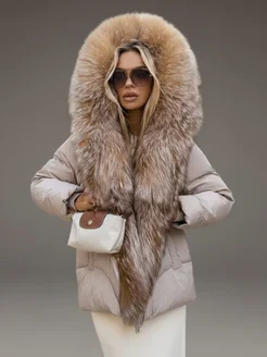 Зимний пуховик с натуральным мехом лисы и капюшоном