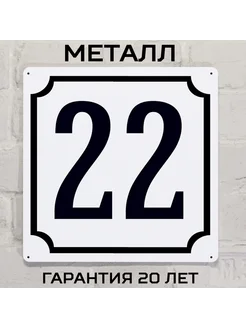 Табличка с номером дома 22 классическая, металл, 25х25 см
