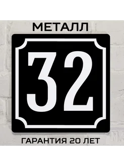 Табличка с номером дома 32 классическая, металл, 25х25 см