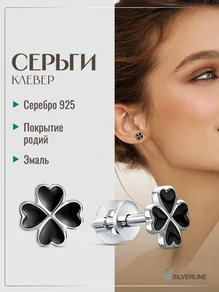 Серьги гвоздики серебро 925 клевер пусеты