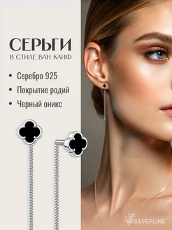 Серебряные серьги протяжки 925 цепочки ван клиф