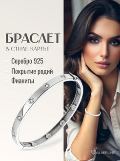 Браслет в стиле Картье с фианитами серебро 925
