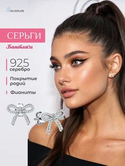 Серьги пусеты бантики серебро 925
